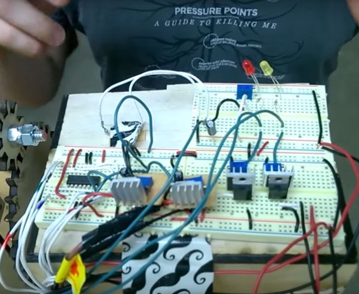 - An Arduino recieves commands from the user via buttons and a knob (potentiometer).